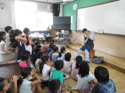 図書ボランティア「ありすのいえ」の方々による読み聞かせ。今日は2年生の教室で実施していただきました。2年生のみんなも大喜びで読み聞かせを楽しんでいました。暑い中,子どもたちのためにありがとうございました。