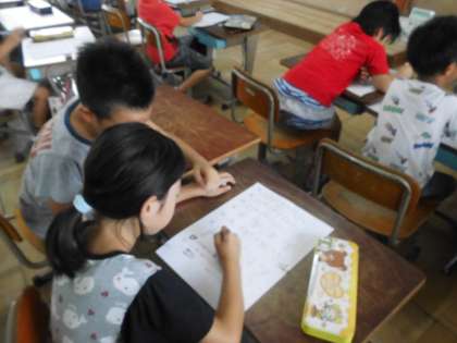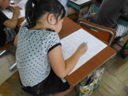 2年生の算数は筆算です。繰り上がりもあり,一の位から順に計算をしていきます。友だちと確かめ合ったり先生に確認してもらったりしながら,計算に取り組んでいます。