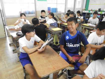 外国語活動の時間は,友だちと英語でコミュニケーションをはかります。ただ話すだけでなく,ジェスチャーや表情も大切にしながらやり取りしていきます。