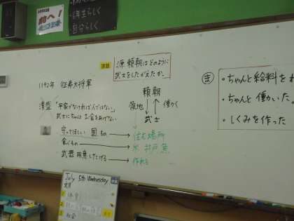 3組では社会の歴史学習を参観していただきました。鎌倉幕府の時代を学習しています。元との戦いについても次回学習していく予定です。