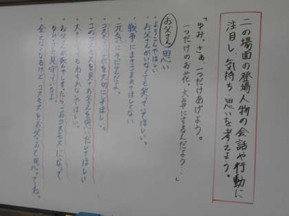 国語では「一つの花」を読んでいます。戦争時代のお話で,みんな当時の様子を思い浮かべながら読み進めています。家で音読を聞く際には,当時の情景が思い浮かべながらお家の方々に聞いていただきたいです。