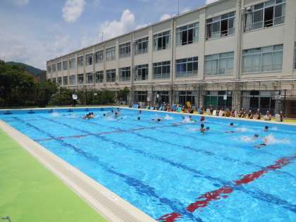 2年生の水泳学習の様子です。バタ足でしっかり進むことを意識しています。水泳学習が終わるまでに,またどれぐらい泳げるようになるのでしょうね。