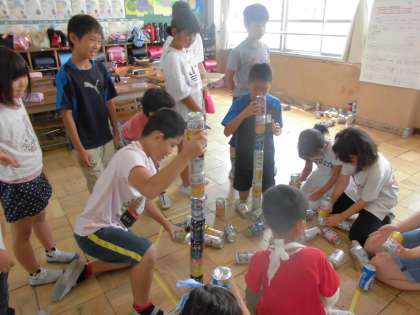 「音楽クイズ」「すごろくゲーム」「空き缶をつもう」 なかなかに難しいコーナーもありましたが,高学年が上手に低学年をリードしていました。
