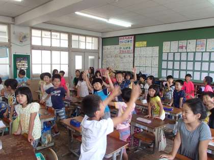 3年生では外国語活動の学習に入りました。アイスブレークに英語の曲「きらきら星」をかけると,歌えないまでも一緒に掌でキラキラしてくれる3年生。英語もとってもノリノリです。今日はお家であいさつや自己紹介をしてくれるといいなと思います。