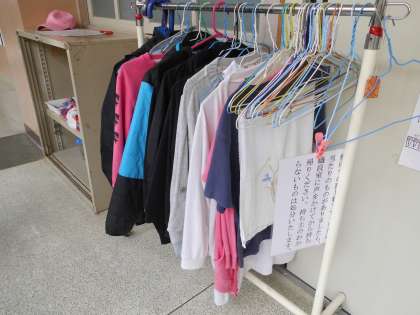 委員会の取組で,みんなに落し物をしないように呼びかけるポスターを作成してくれるそうです。職員室前の落し物コーナーにも,たくさんの落し物があります。自分のがないか,みんな確かめてくださいね。
