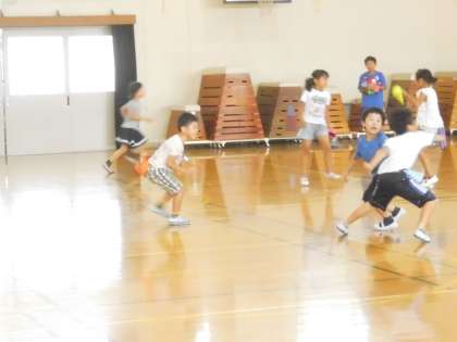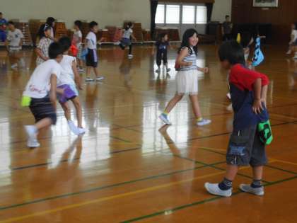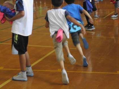 5・6年生の運動委員会のメンバーが,「しっぽとり」という遊びを紹介してくれています。今日は2年生に教えるとともに,実際に遊んでもらいました。みんな暑い中でしたが,楽しそうに遊んでいました。またクラスでもやってみるのもいいですね。