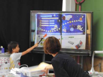 算数の学習では,自分の考えを前に立って説明することもあります。みんなに伝わるようにということを意識して,頑張って発表しています。1年生から学習を積み上げています。
