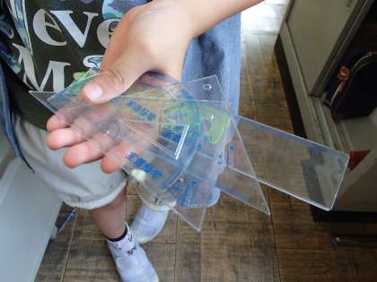 頑張り屋さんの女子が見せてくれたのは,定規・三角定規・分度器のセットです。どれも同じロゴが入っていてお揃いです。きっと大切に扱っているのか,どれもピカピカでした。真面目に一生懸命,学習している姿がすぐに思い浮かびました。