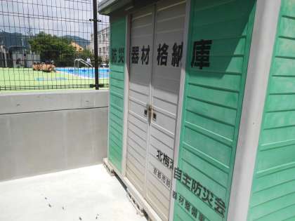 防災倉庫,備蓄倉庫が校内にあるのですが,2つの倉庫に保管されているものも紹介していただきました。いざという時のために,倉庫に設置されていることがわかりました。