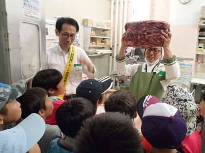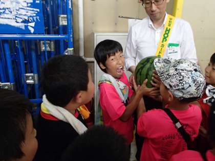 3年生は3,4校時に,校区のスーパーマーケットに,社会見学に行きました。スーパーでは,どのような工夫をしてお客さんに商品を売っているのか,教室での買い物調べを通して考え,実地見学して来ました。店長さんにやさしく案内され,バックヤードの冷蔵庫や冷凍庫,魚やお肉,野菜のコーナーにも快く迎え入れてくれました。特大のお肉や立派なスイカ,凍りそうな冷凍室など,びっくりと発見の連続でした。最後の質問コーナーでは,温めてきた質問を店長さんに聞きました。とてもやさしく快く答えてくださったスーパーマーケットの方に感謝,です。ぜひご家庭でも見学の様子を聞いてあげて頂ければと思います。