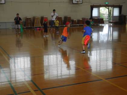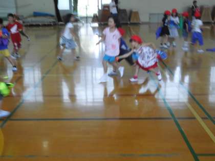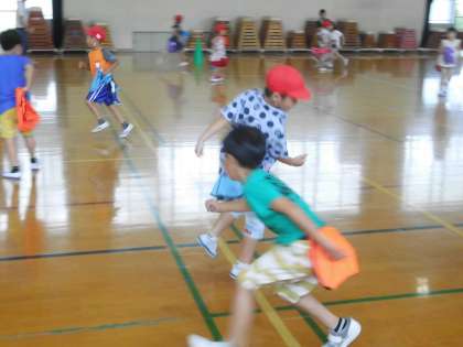 運動委員会のメンバーが全校のみんなに「しっぽとり」という遊びを教えてくれています。今日は1年生が対象です。ただ,1年生にとってはルールが少し難しい・・。でも,さすが上級生。やさしく上手に教えてくれたおかげで,1年生も楽しむことができました。
