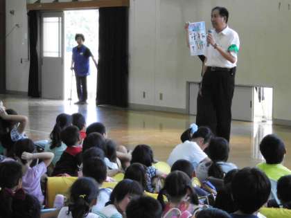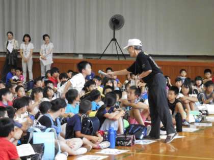 各町別の話し合いの後,全校が体育館に集まり,地域の方や右京警察の方から,防犯についてお話を聞きました。これから夏休みに入った際,犯罪や事件,事故などにまきこまれないようにどうしたらいいか,具体的に教えていただきました。