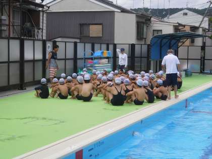 4年生は最後のプールを水泳大会で締めくくりました。25mリレーでは,泳ぐのではなくて走ってリレーしていきます。水の中,25mもの距離を走るのはさすがにしんどいようでしたが,みんなで楽しいひと時を過ごすことができました。