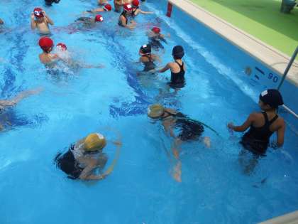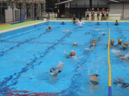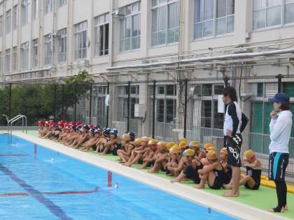 午後は低学年の水泳学習です。高学年の時と同様,たくさん参加してくれました。前半はいっぱい水の中で遊びました。後半は場別にめあてをもって泳ぎました。50mを何度も泳ぐ人もいて,低学年の人たちも今シーズン,しっかり泳力をつけてきたことがわかります。