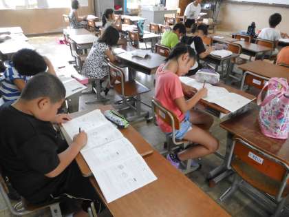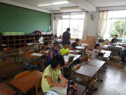 3年生は漢字の学習に取り組む人がたくさんいました。3年生ともなると,筆順も多く難しい漢字をたくさん習います。一つ一つ確実にマスターしていけるように,夏休みしっかり復習ですね。