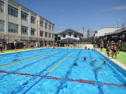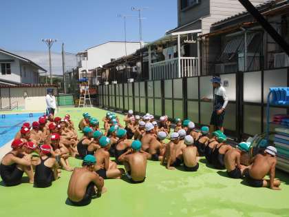午後からは高学年の水泳学習でしたが,午前の時と同様にたくさんの参加がありました。夏休みの水泳学習に毎回参加している人もいて,たくさん泳ぐことも平気になってきたようです。明日もたくさんの参加を待っていますね。