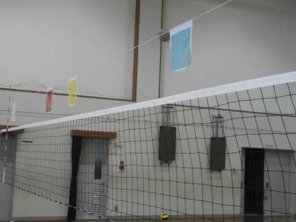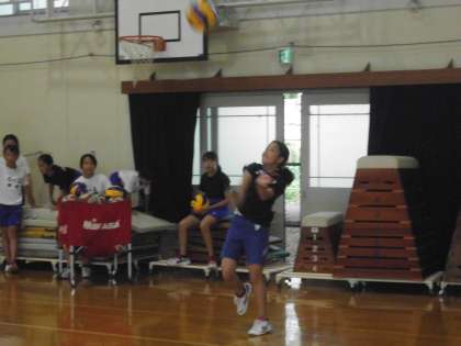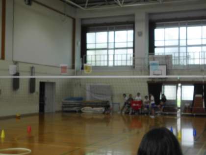 バレーボール部はサーブの練習の様子です。ネット上部にロープが張られていて,低いサーブを打つことを狙っています。また,相手がレシーブしやすいような場所にはサーブしないようにも気をつけて,何本も練習しました。