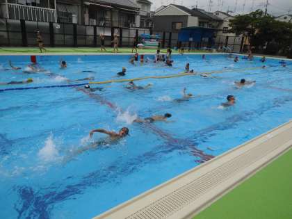 今日はプール最終日。午前中の低学年の部にたくさんの人が参加しました。この夏できるようになったことを確かめながら,たっぷり泳ぐことができました。