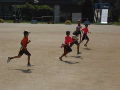 暑い運動場でみんな熱心に練習に取り組んでいました。8月4日には練習試合も控えています。試合に向けて,充実した練習ができました。