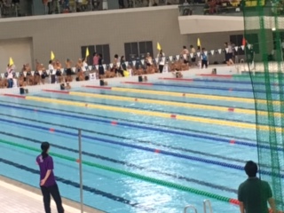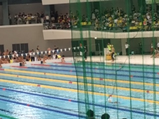 男子の部、クロールと平泳ぎ全て終わりました。午後からのリレーに向けて、休憩中です。