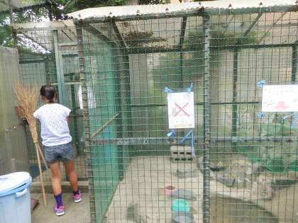 サマースクールも終わり,学校に来る人も少なくなって,学校では静かな時間が流れています。でも,飼育委員の当番は忘れずに学校にやって来て,うさぎの世話をしてくれています。うさぎも元気に顔を出してくれました。