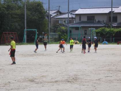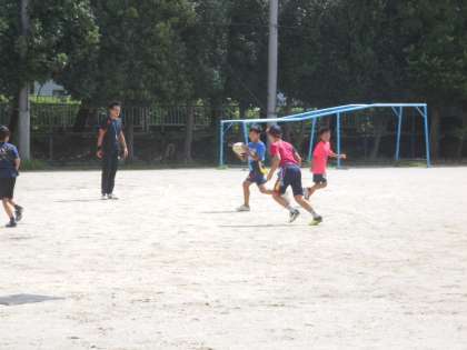 今週も練習を頑張るタグラグビー部。先日の練習試合を受けて,さらにチームがレベルアップできるように,細かな動きやサインプレーなども確認しながら練習に取り組んでいました。