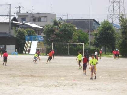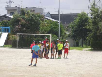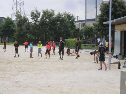 タグラグビー部は学校閉鎖日前の最後の練習です。教室でミーティングをした後,運動場に出てきてみんなでゲームをして楽しく体を動かしました。暑い中,みんなよく頑張っています。学校閉鎖日が明けてからの練習も,またみんなで頑張りましょう。