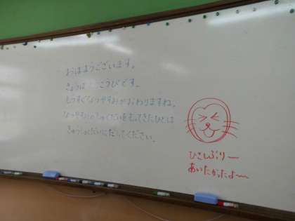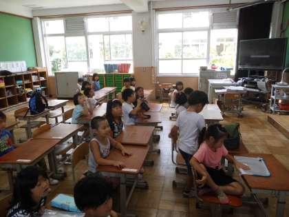 1年生にとっては小学校で初めての夏休み。とても楽しい思い出ができたようで,必死に夏休みの出来事を先生に伝えていました。宿題も頑張って取り組めたようです。夏休み明け,一回り大きく成長した1年生に会えるのが楽しみです。