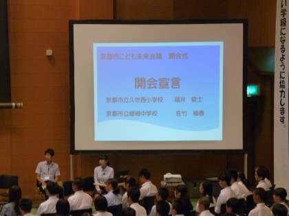 京都市総合教育センターで開催された京(みやこ)キッズ会議に,本校も参加しました。児童会の2名が代表して本校の取組を発表し,他校の人たちと意見を交わしあいました。
