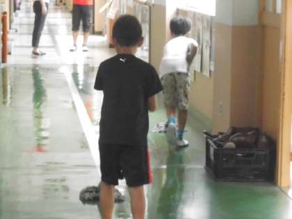 夏休みの間の埃やごみを,大掃除できれいにしました。廊下は久しぶりに水拭きをしてくれたので,とてもすっきりしました。管理用務員さんの方では,この夏伸びたたくさんの草を刈ってくれていました。