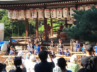 午後から和太鼓の演奏がありました。本校からは2名の子が,夏休みの間に練習をし,出演しました。たくさんの演目を力強く,撥さばきも見事に演奏していました。