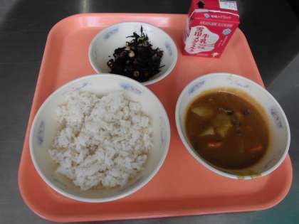 麦ごはん・牛乳・カレー・ひじきのソテー