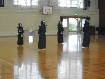 梅津中学校の体育館が工事中のため,今日,本校の体育館で剣道部が練習を行いました。小学校の部活動には剣道部はないので,みんな興味深げに体育館をのぞいていました。