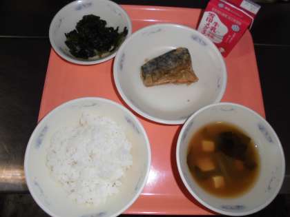 ごはん・牛乳・さばのたつたあげ・ほうれん草のおかか煮・みそ汁