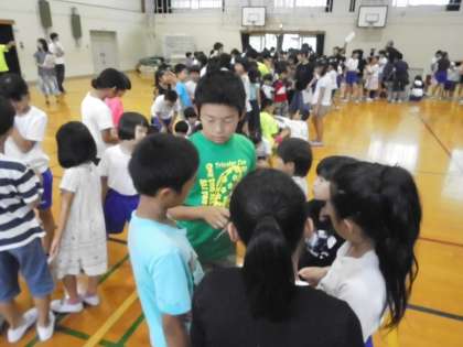 今日はなかよし集会,なかよし遊びの日です。朝,6年生を中心にしてたてわりグループで集まり,なかよし遊びの確認をしました。ロング昼休みにたっぷり遊べるのをみんな楽しみにしています。