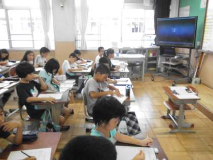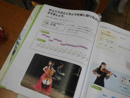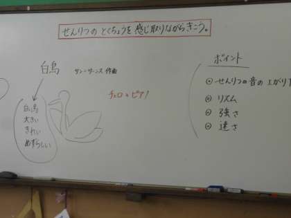 音楽の時間,鑑賞です。「白鳥」を聴きました。チェロとピアノの音色を聴き,お互いに感じたことを交流しました。みんな美しい演奏にじっくりと聴き入っていました。