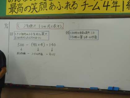算数「式と計算の順序」の学習です。算数の時間,今日はどんな学習をするのかみんなで見通しを立ててから,課題に向かっていきます。集中してみんな学習に向かっています。