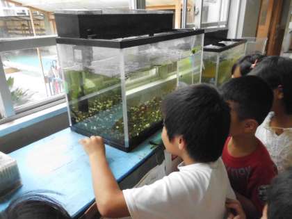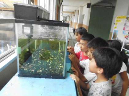 先日,有栖川での川遊びの時に捕まえてきたおたまじゃくし。足が出てきたので観察しました。みんなも変化にびっくりした様子。引き続き観察をしていきます。