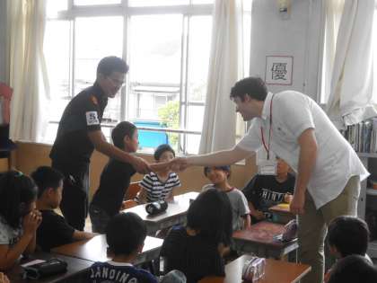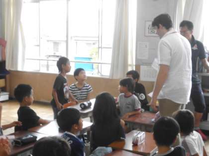 ALTの先生と一緒に学習です。3年生にとって英語はまだまだ身近なものではありませんが,先生と一緒に英語でやり取りをして,楽しく英語に慣れていきました。