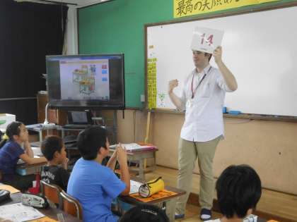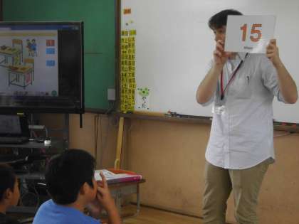 今日はALTの先生は4年生の教室へ。4年生はみんな少し緊張した表情で,あまり声が出ていない様子。でもこれから慣れていけば生き生きと英語を話し出すことだと思います。また楽しく学習していきましょう。