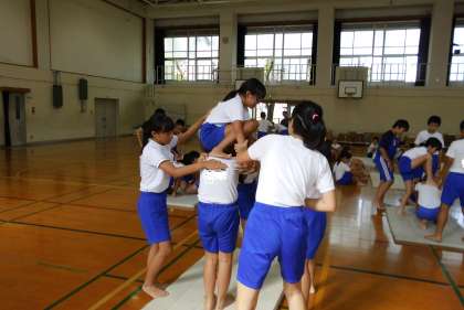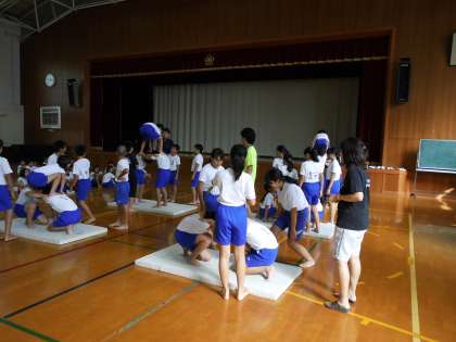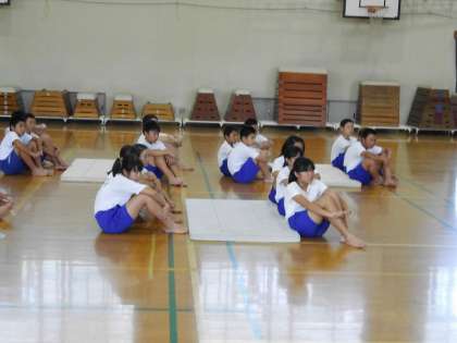 運動会の組体操は,5・6年合同で取り組みます。今日初めて合同で練習しました。6年生が5年生にアドバイスしてあげています。5年生ができるまで6年生が見守ってくれています。6年生が去年先輩たちにしてもらったように,後輩に接してくれています。とても素敵な光景です。