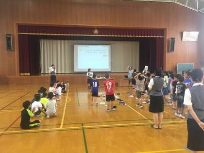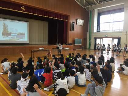 企業の方に来ていただいての出前授業。4年生は,総合的な学習の時間に環境について学習しています。今回は企業の方々からお話やクイズを出題してもらい,環境について一緒に考えました。