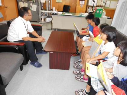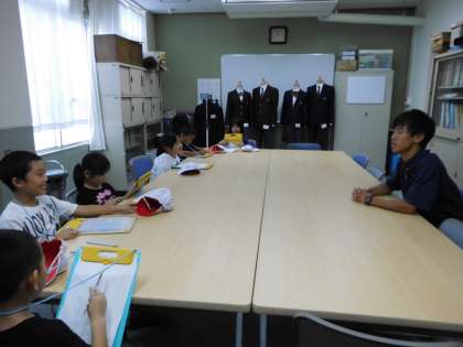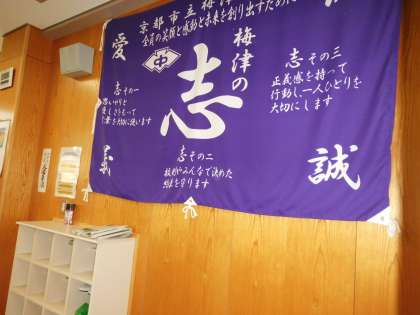梅津中学校にも出かけました。校長室に入れていただき,校長先生がわざわざインタビューに答えていただきました。