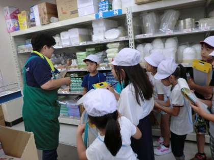 スーパーでは,お店の人に1人ずつ質問していきました。一つ一つていねいに答えていただきました。初めて知ったこともいっぱいありました。