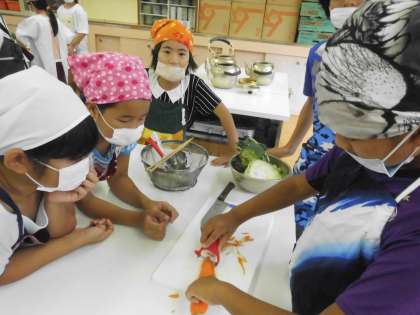 先日の1組に引き続き,今日は2組が調理実習です。野菜を切り,ゆで時間を考えながら調理を進めていきます。班で役割分担をして,協力して調理を進めていくことができました。