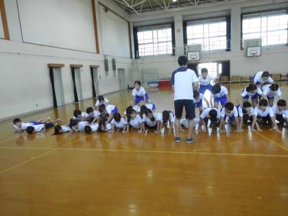 今週も毎日のように運動会の練習があります。5・6年生は合同で,ピラミッドの一気立ちの練習です。声を掛け合って,みんなんで息を合わせるようにしています。6年生は昨年度経験しているので,コツはつかんでいるようです。5年生も,6年生についていこうと頑張っています。