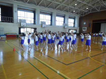 運動会の練習です。ロックソーランを威勢のいい声と共に力強く踊ります。隊形移動もして,自分が演技する場所を確認しています。いい雰囲気でみんな取り組んでいます。