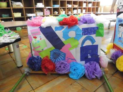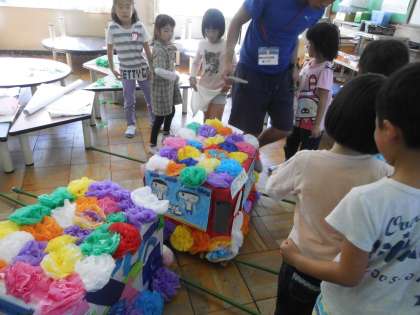 図工の時間に,運動会の団体競技で使うおみこしの飾り付けをしました。みんなで華やかなおみこしにすることができて大満足の1年生。また,運動会が楽しみになりました。