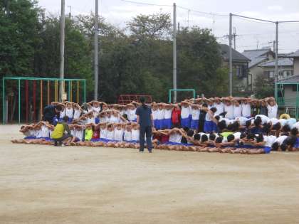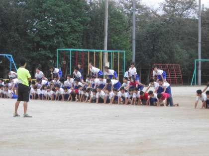 今日はあいにくの雨。でも,5・6年生は雨が降り出す前に,運動場で組体操の練習です。集中力をもって,しっかり取り組むことができました。