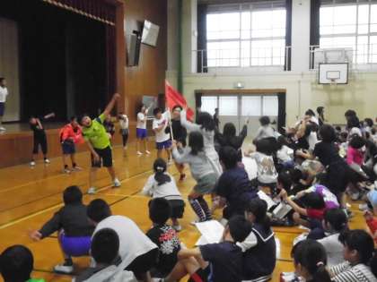昼休みは赤組の応援練習。初めて集まったとは思えない盛り上がりでした。応援団長を中心にして,当日も運動会を大いに盛り上げていってくれることだと思います。